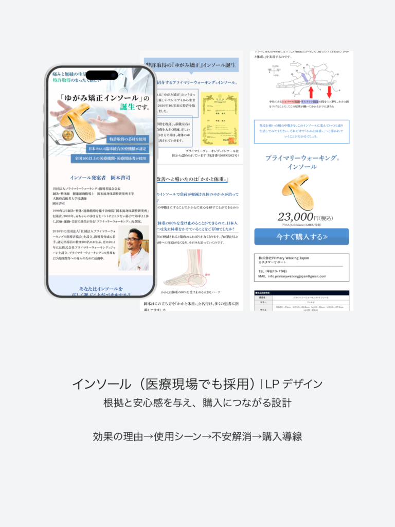 LPは、見た目がきれいなだけでは成果につながりません。誰に向けて、どの順番で伝え、どこで不安を解消し、行動してもらうのか。構成/訴求/導線まで含めて設計し、行動につながるLPをご提案しています。